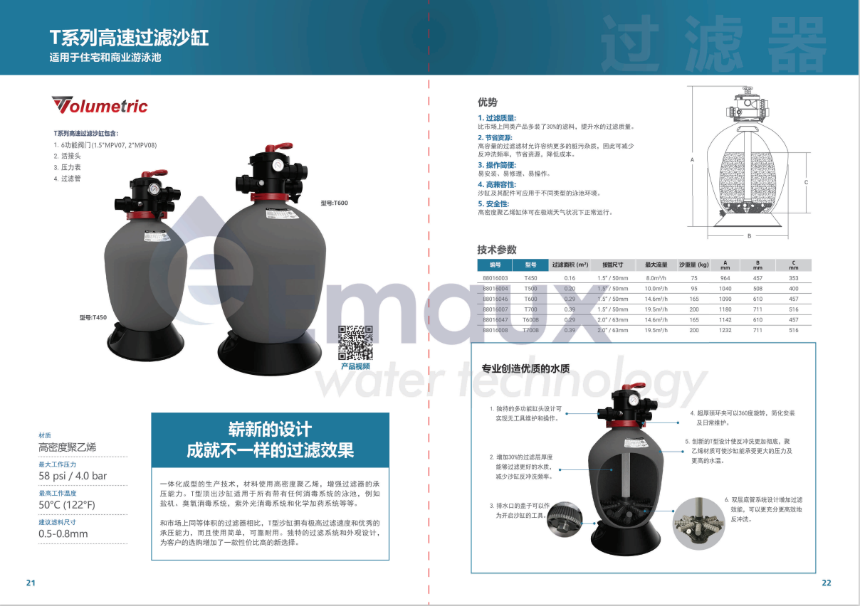 和市場上同等體積的過濾器相比,T型沙缸擁有極高過濾速度和優(yōu)秀的承壓能力,而且使用簡單,可靠耐用。獨(dú)特的過濾系統(tǒng)和外觀設(shè)計,為客戶的選購增加了一款性價比高的新選擇。