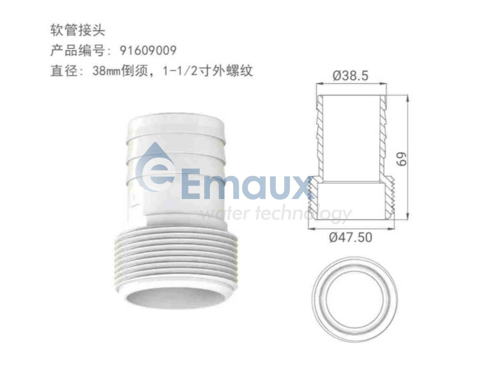 直徑: 38mm倒須,1-1/2寸外螺紋