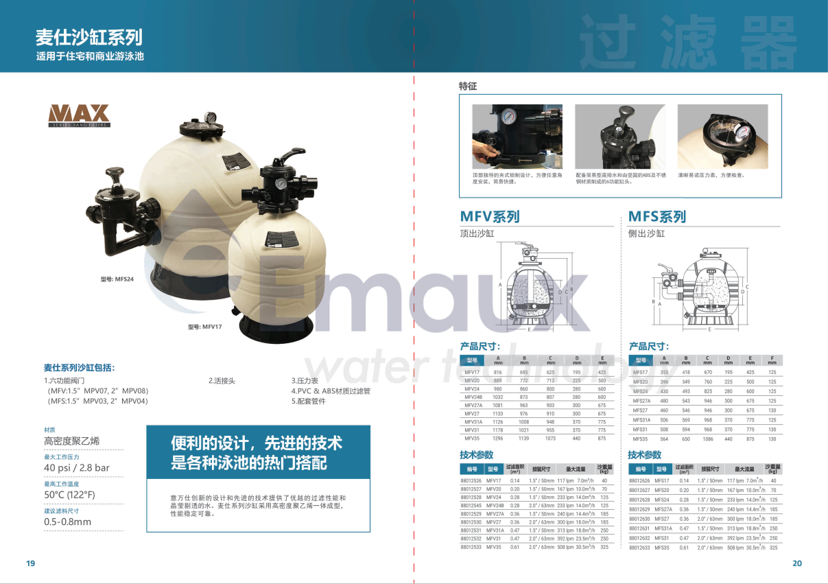意萬仕創(chuàng)新的設計和先進的技術提供了優(yōu)越的過濾性能和品瑩剔透麥仕系列沙缸采用高密度聚乙塔一體成型,性能穩(wěn)定可靠。