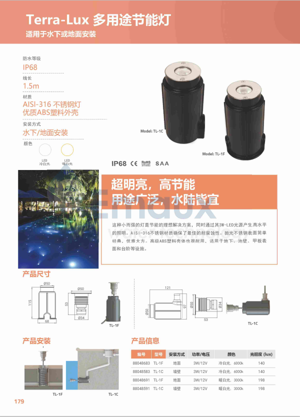 這種小而強的燈是節(jié)能的理想解決方案,同時通過其3W-LED光源產(chǎn)生高水平的照明。AISl-316不銹鋼材質(zhì)確保了最佳的耐腐蝕性。拋光不銹鋼表面簡單經(jīng)典,優(yōu)雅大方。高級ABS塑料殼體也很耐用,適用于地下、池壁、甲板表面和臺階等設施。