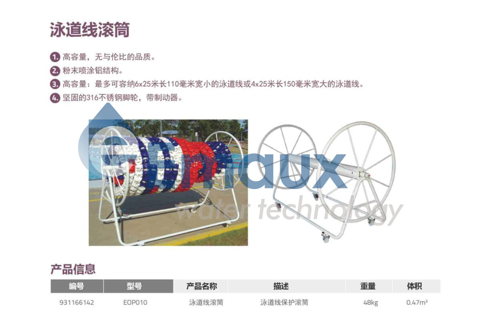 3. 高容量:最多可容納6x25米長(zhǎng)110毫米寬小的泳道線或4x25米長(zhǎng)150毫米寬大的泳道線。